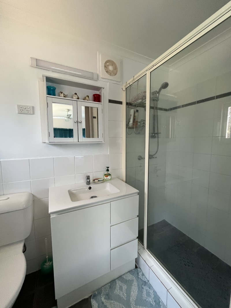The large master bedroom comes complete with a built-in wardrobe and a private ensuite, providing a peaceful and private space to unwind. The second bedroom also features a built-in robe, and the third bedroom offers ample space, perfect for kids, guests or hobbies. The main bathroom has been freshly renovated and is beautifully simple and sleek, complementing the home's fresh flooring and paint throughout.